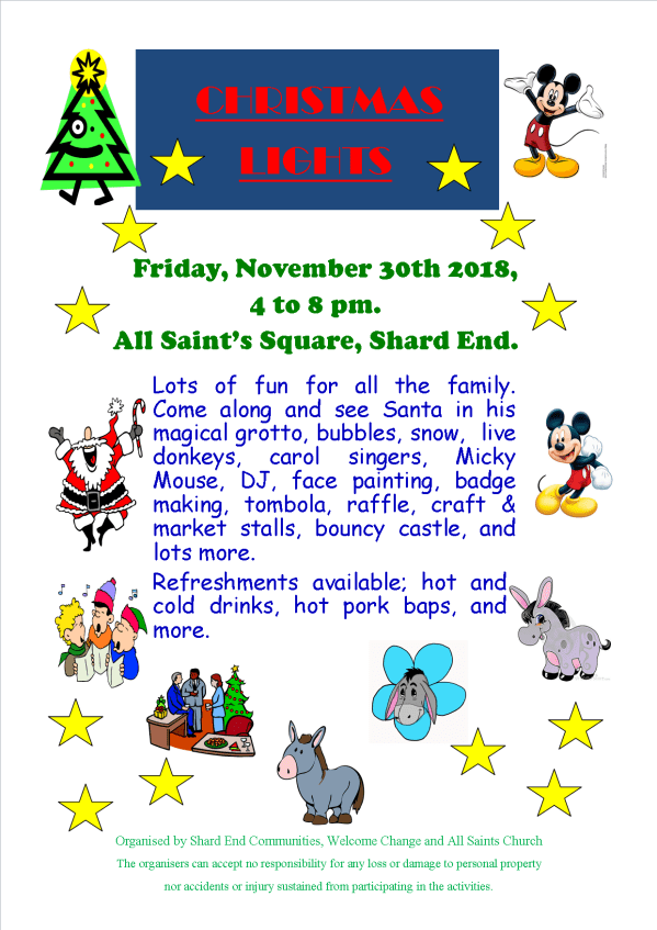 Tagged: All Saints Square, Birmingham, Celebrate, celebration, Christmas, communities, community, Community Hall, event, Library, Lights, Santa, Shard End, The Shard, Welcome Change, Xmas